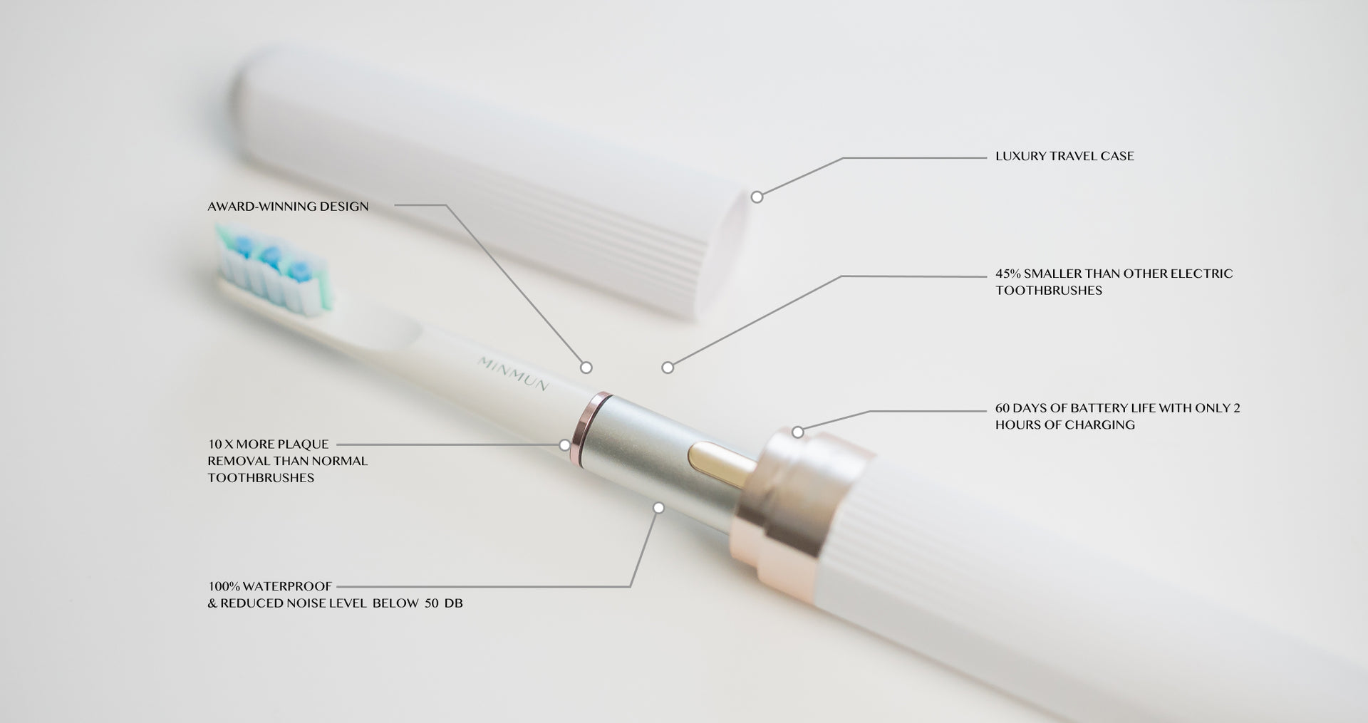 After two years of relentless research, dedication, and hard work, we proudly introduce Minmun Sophistic! The most elegant electric toothbrush at 51g.